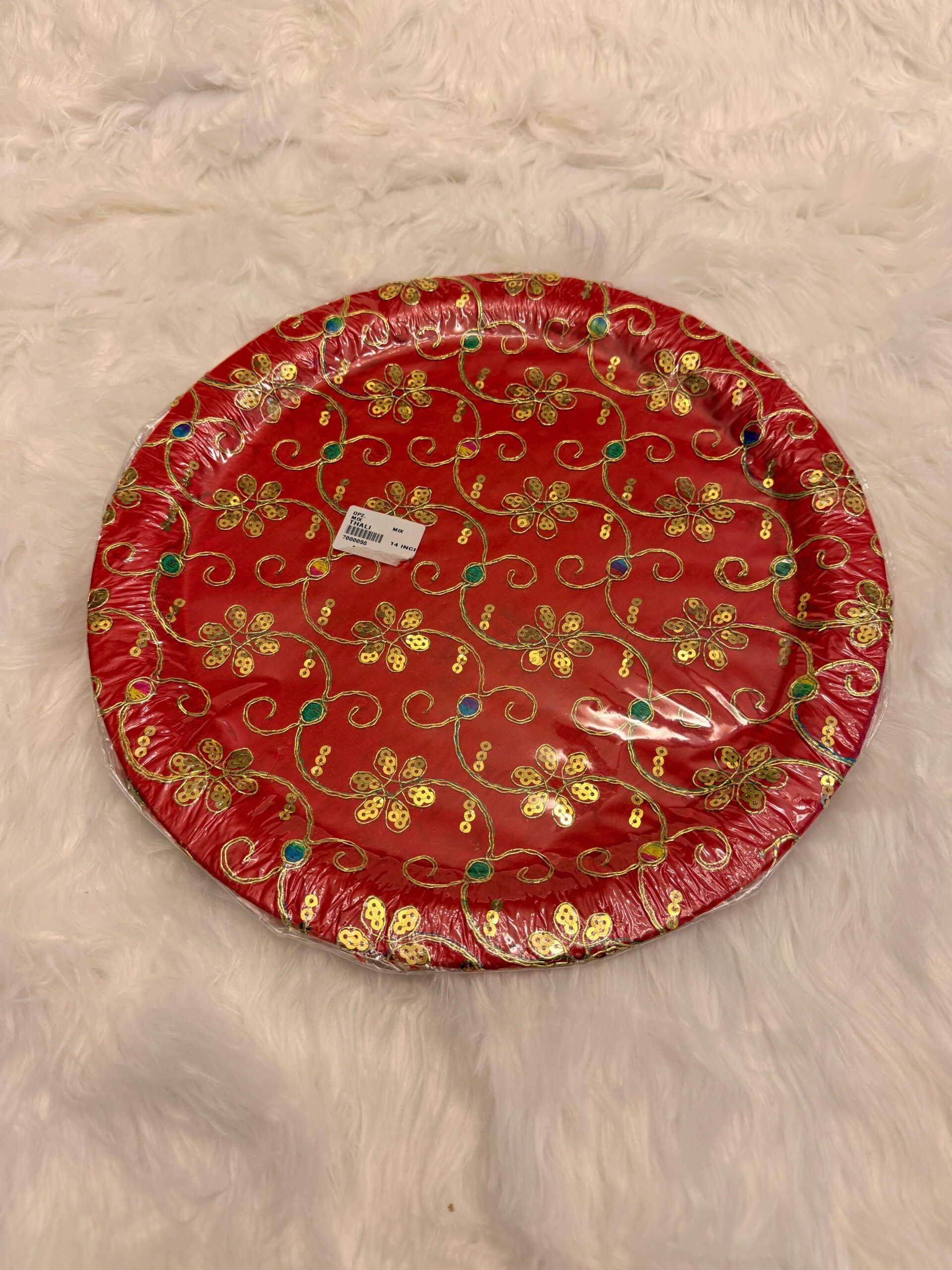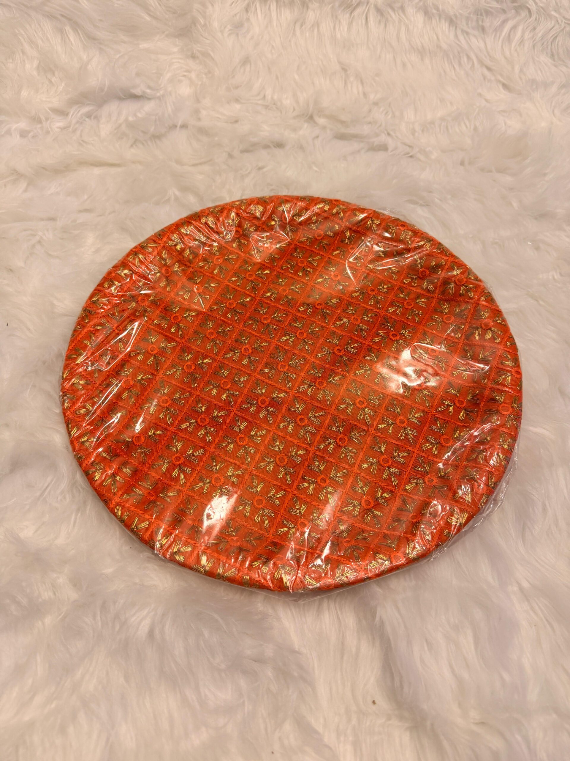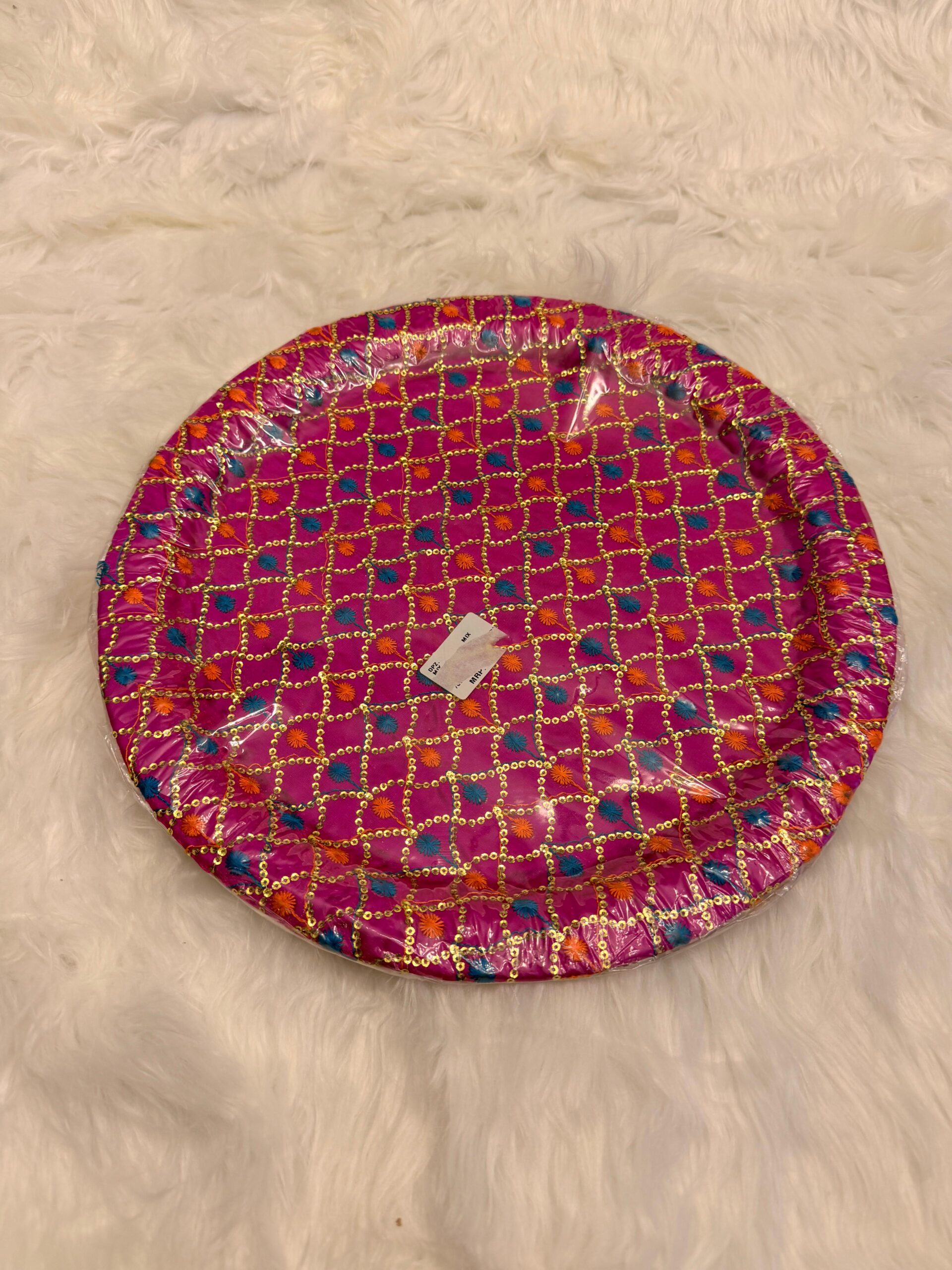 Decorative round thaals perfect for celebrating mehndi, manjha, and mayoun. Ideal for packing mithai, fruits, bangles, jewelry, and bride–groom outfits.($54 each)